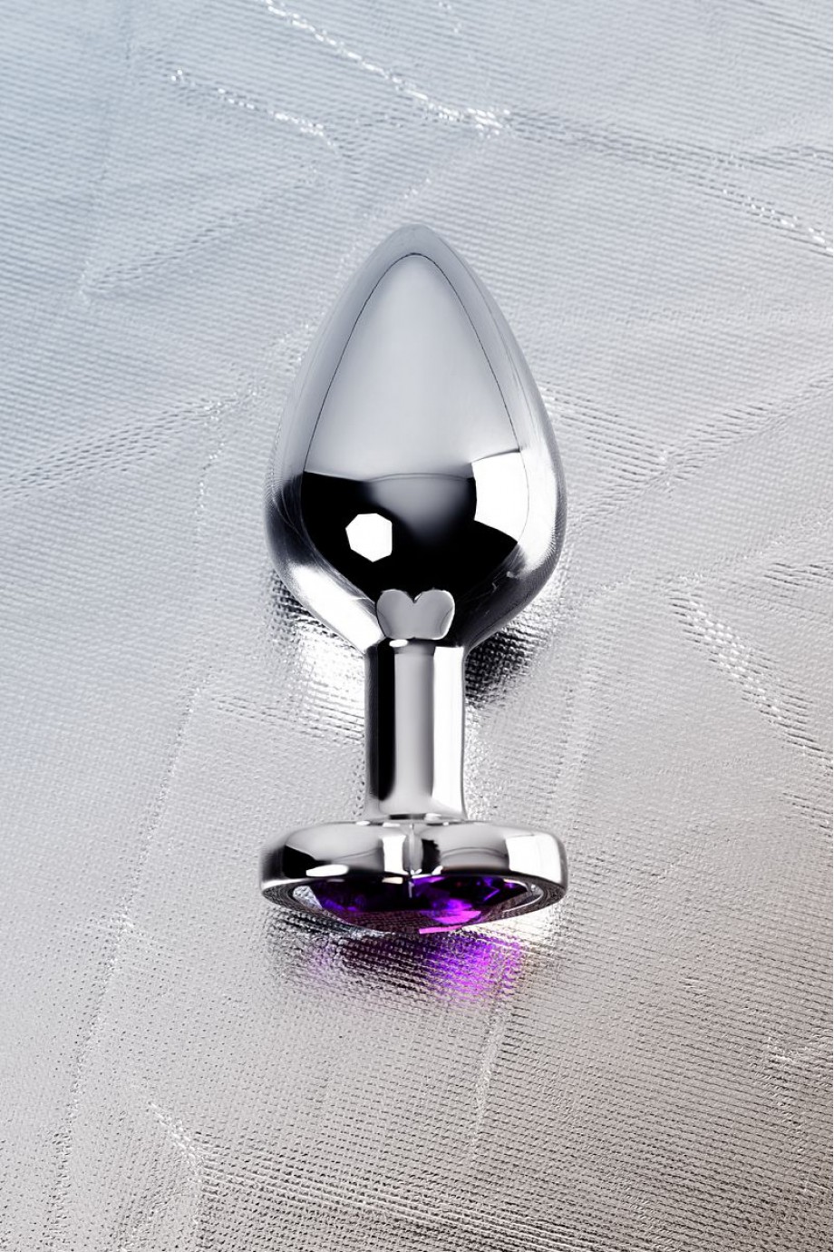 Анальная пробка Metal by TOYFA, металл, серебристый, с кристаллом цвета аметист, 8 см, Ø 3,4 см, 85 г