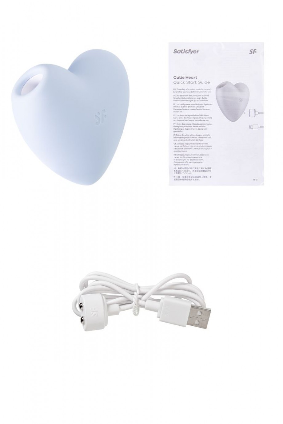 Вакуумно-волновой стимулятор клитора с вибрацией Satisfyer Cutie Heart, силикон, голубой, 7,7 см