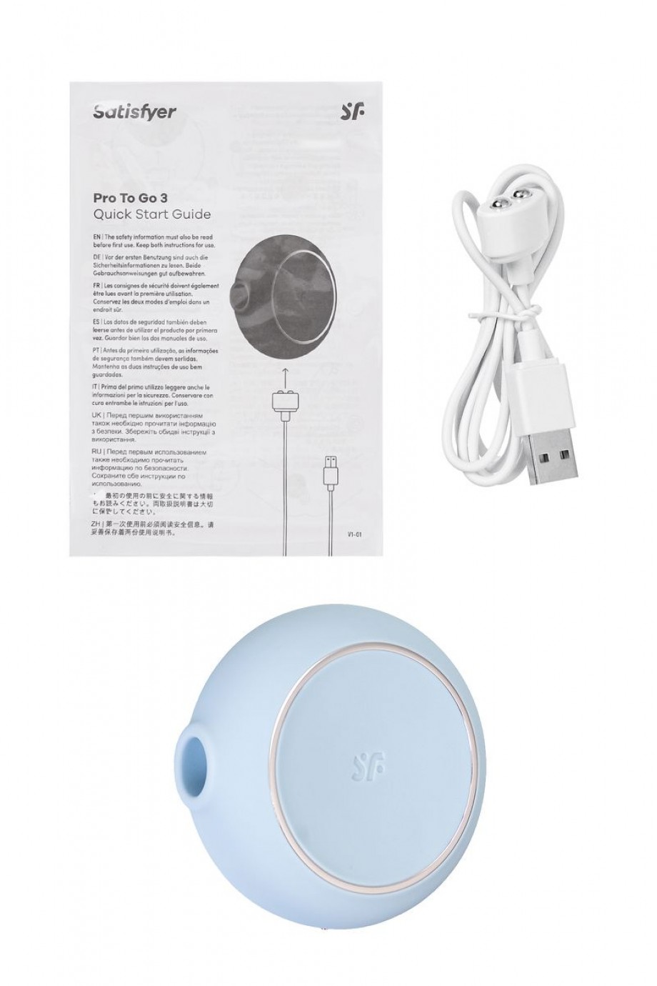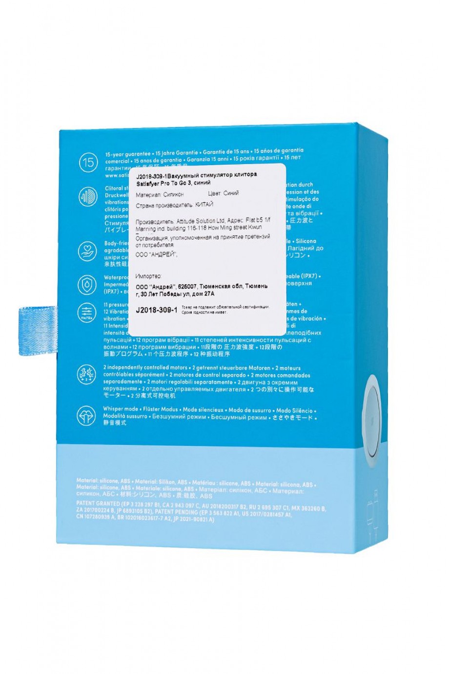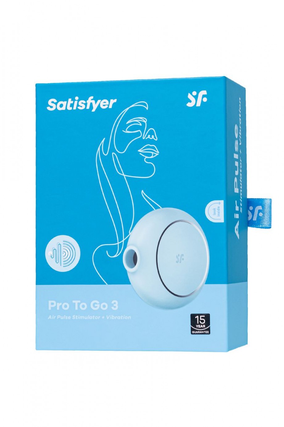 Вакуумный стимулятор клитора с вибрацией Satisfyer Pro To Go 3, голубой, 8,5 см
