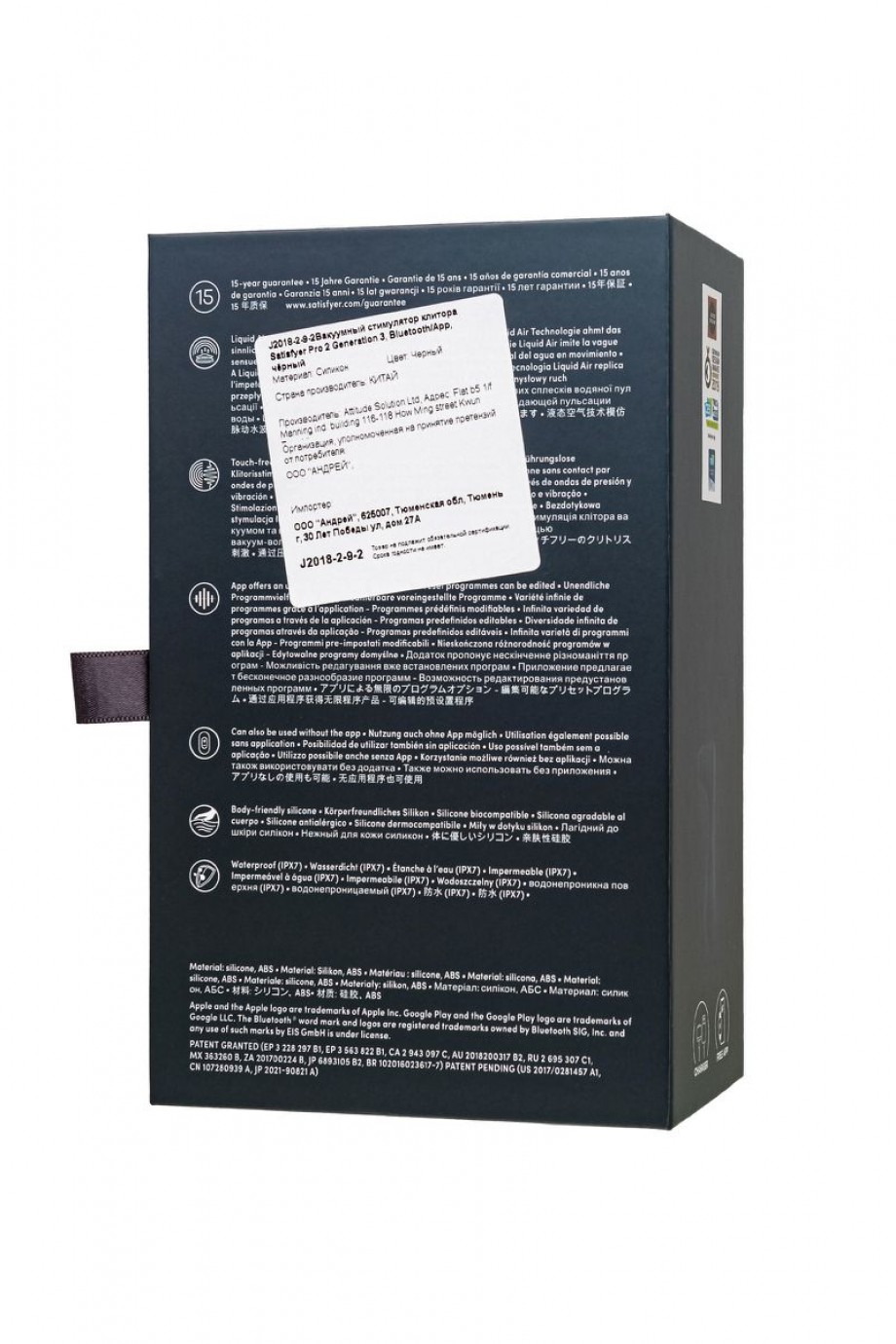 Обновленный Pro 2 Generation 3 полностью покрыт бесшовным приятным для кожи силиконом с технологией Soft Touch Feel. Нежный материал особенно приятно держать в руках. Высококачественный шелковистый на ощупь гипоаллергенный силикон – визитная карточка бренда Satisfyer. Поверхность насадок мягко и деликатно стимулирует клиторальную область, тактильно нежный и приятный на ощупь, силикон быстро адаптируется к температуре вашего тела.