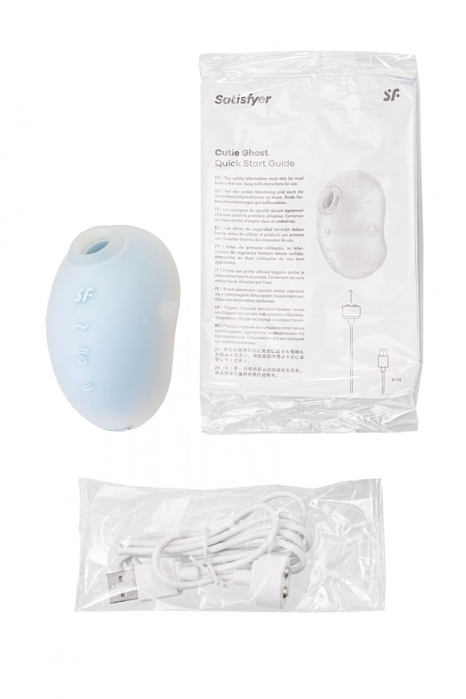 Вакуум-волновой стимулятор клитора с вибрацией Satisfyer Cutie Ghost, силикон, голубой, 9,1 см