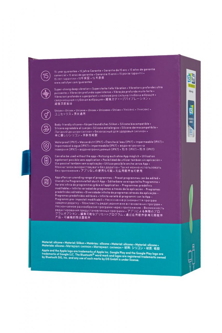 Шелковистое силиконовое покрытие — фирменный знак Satisfyer, тактильно нежный и приятный на ощупь, он быстро адаптируется к температуре вашего тела. Чтобы получить максимум удовольствия и сохранить материал в наилучшем виде, рекомендуется пользоваться качественной смазкой на водной основе. После использования обязательно очищайте вибратор теплой водой со специальными бактерицидными спреями для интимных товаров. Благодаря водонепроницаемости игрушку можно использовать в ванной и душе, не более 30 минут.