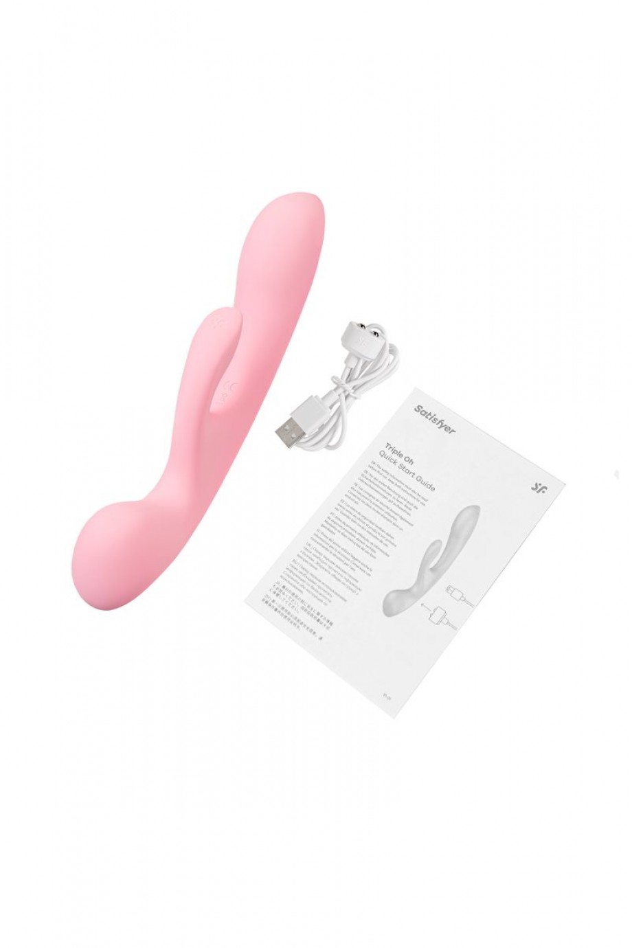 Нереалистичный вибратор Satisfyer Triple Oh, силикон, розовый, 24 см