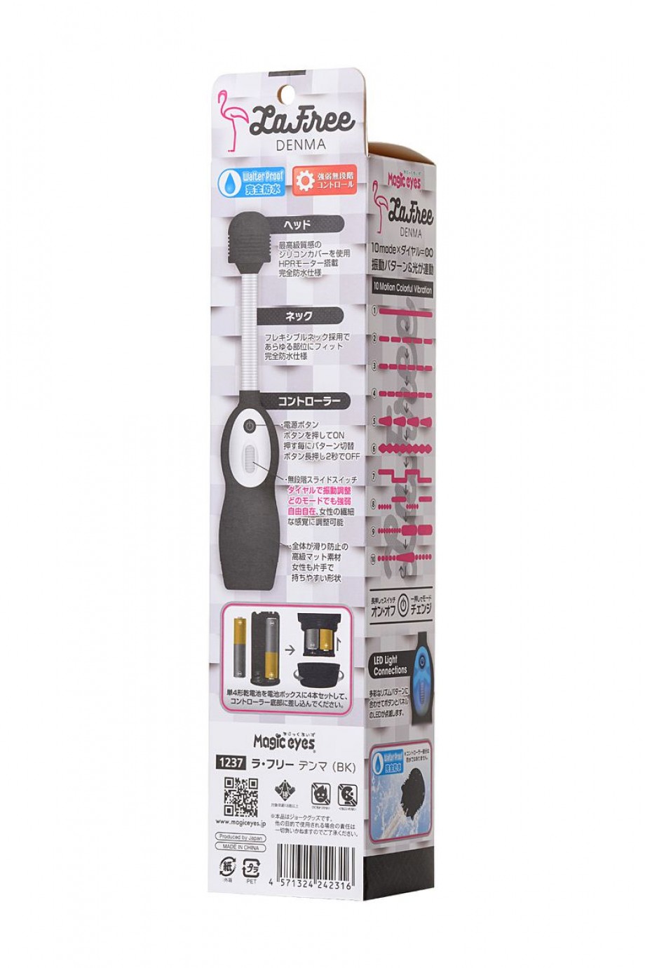LaFree DENMA Magic Eyes — японский вибромассажер, который делает повседневную жизнь приятнее. Он легко совмещает в себе полезный функционал сразу двух устройств: мощного массажера и стимулятора эрогенных точек. С ним вам не придется выбирать между яркой сексуальной разрядкой и расслабляющим массажем. Просто попробуйте пройтись большой силиконовой головкой массажера по отдельным участкам тела. Почувствуйте, как отменно прорабатывают их 10 режимов вибрации. А потом согните «шею» стимулятора под нужным вам углом наклона, чтобы познакомиться с магией точечного массажа.