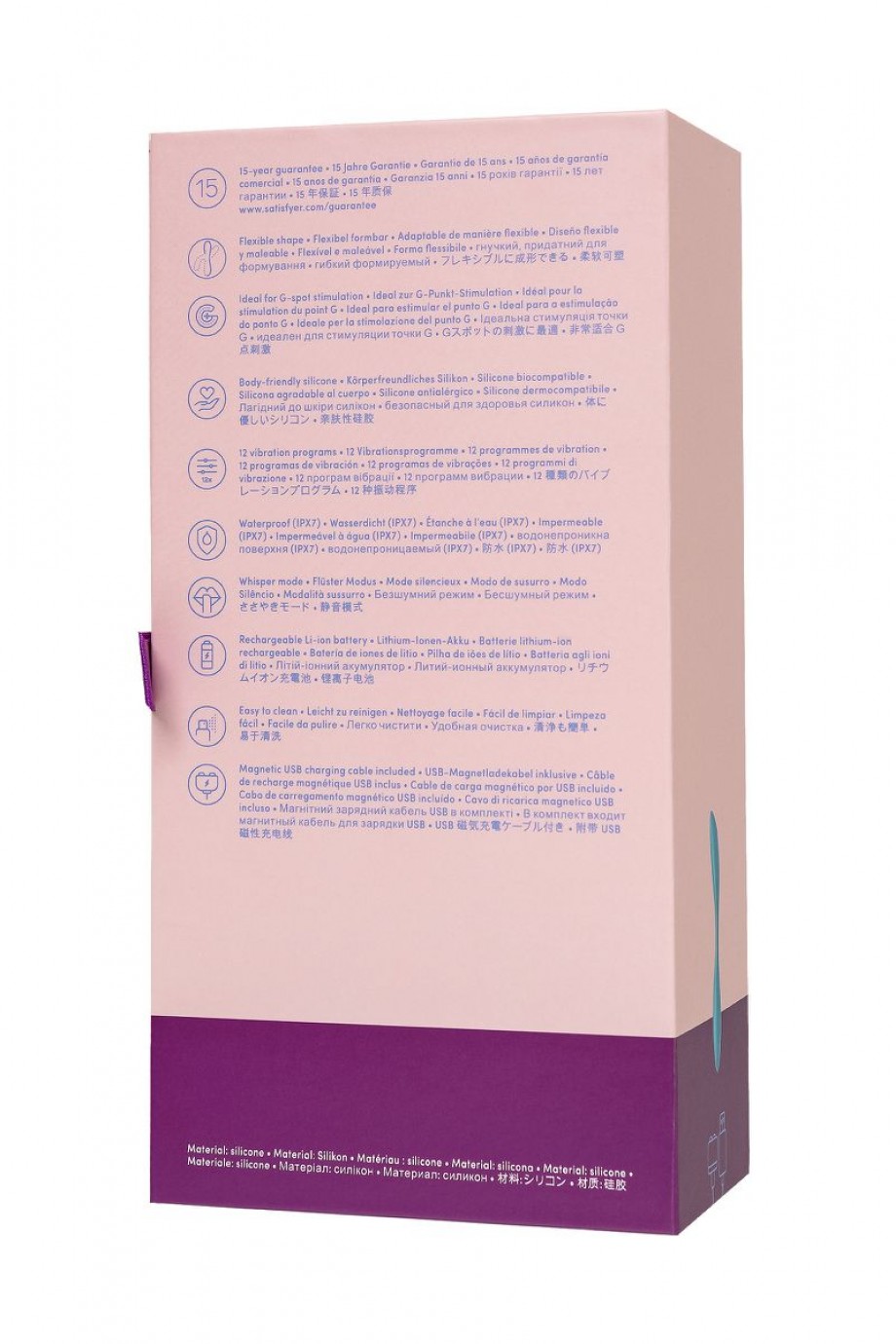 Шелковистое силиконовое покрытие — фирменный знак Satisfyer, тактильно нежный и приятный на ощупь. G-Spot Flex 1 позаботится о самых чувственных прикосновениях даже в ванной и душе. Благодаря водонепроницаемости IPX7 игрушку можно погружать под воду до 30 минут. Чтобы получить максимум удовольствия и сохранить материал в наилучшем виде, рекомендуется пользоваться качественной смазкой на водной основе. После использования обязательно очищайте стимулятор теплой водой со специальными бактерицидными спреями для интимных товаров.