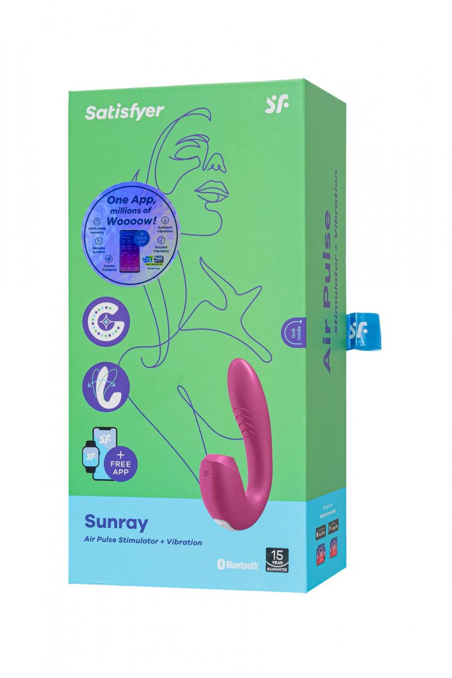Вибратор Satisfyer Sunray Connect App, с вакуум-волновым стимулятором, силикон, розовый, 15 см